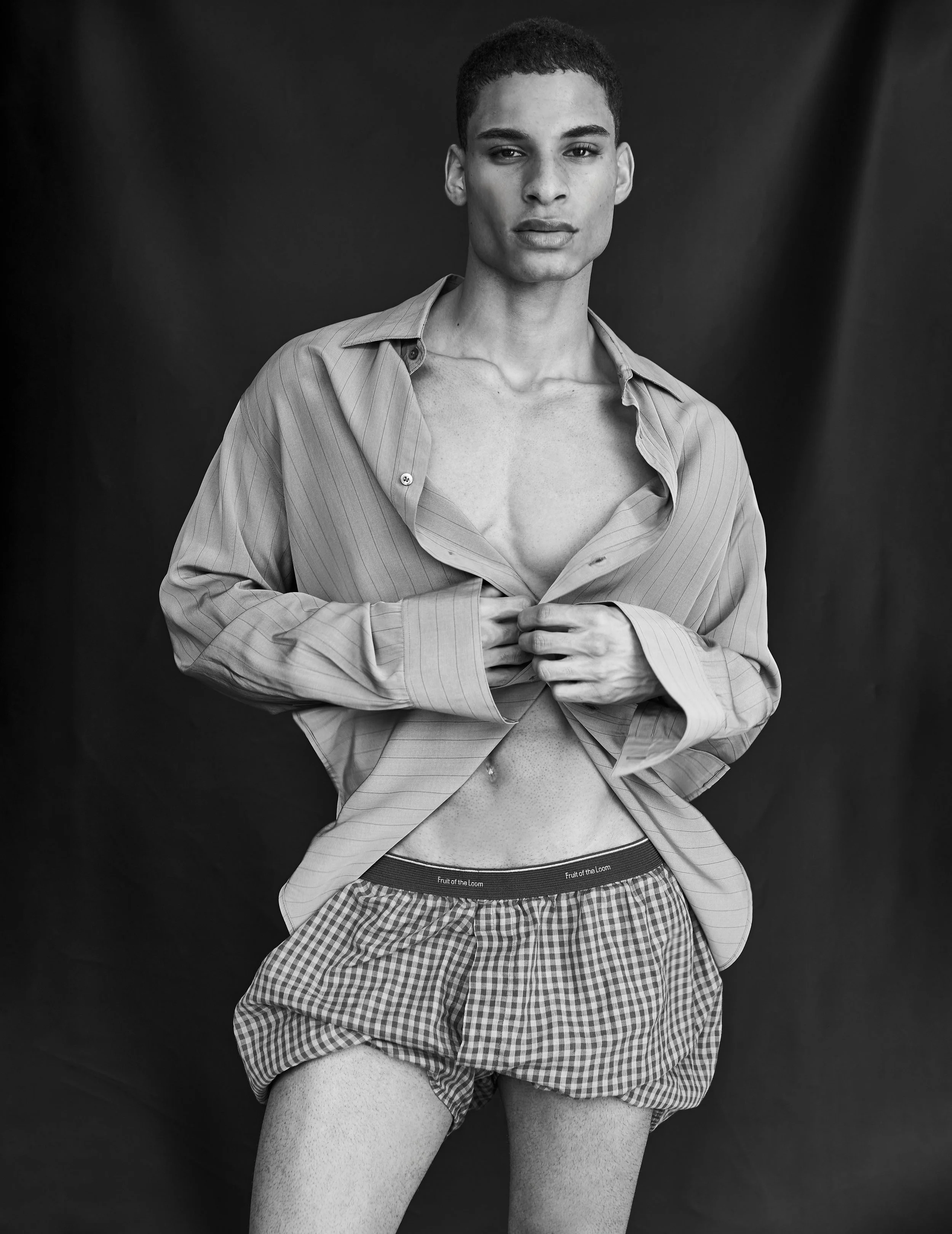 Caston Granger: Where prep meets poetry, the story unfolds in rich black and white. Moving between stripped-back intimacy and refined preppy attitude, ginger warmth is offset by crisp tailoring and classic silhouettes. From bare simplicity with a football in hand to timeless layers, it becomes a quiet study of modern masculinity, measured, confident, and precise.