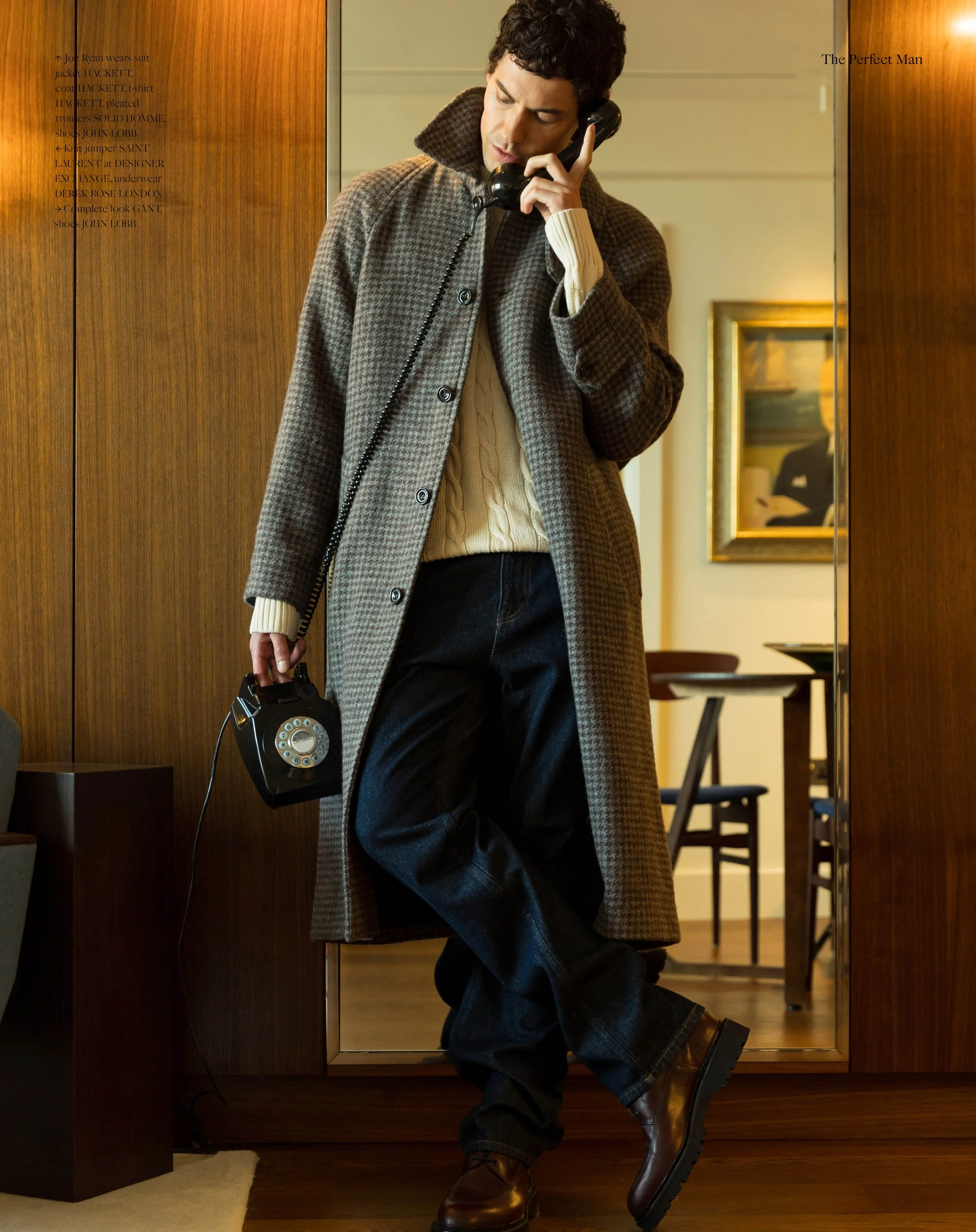1-6. Knit jumper SAINT LAURENT at DESIGNER EXCHANGE, underwear DEREK ROSE LONDON, Complete look GANT, shoes JOHN LOBB 7-8. Joe wears MOSS, Trousers NANUSHKA, eyewear OLIVER PEOPLES 9-10. Joe wears complete look BRUNELLO CUCINELLI 11-12. Joe wears FENDI, Knit jumper MOSS 13-14. Joe wears FENDI, Knit jumper MOSS 15-16. Joe wears boxer trunks and socks DSQUARED2 17-18. Joe wears complete look SOLID HOMME, shoes JOHN LOBB 19-20. Joe Ryan wears suit jacket HACKETT, coat HACKETT, t-shirt HACKETT, pleated trousers SOLID HOMME, shoes JOHN LOBB, Complete look SOLID HOMME, shoes JOHN LOBB