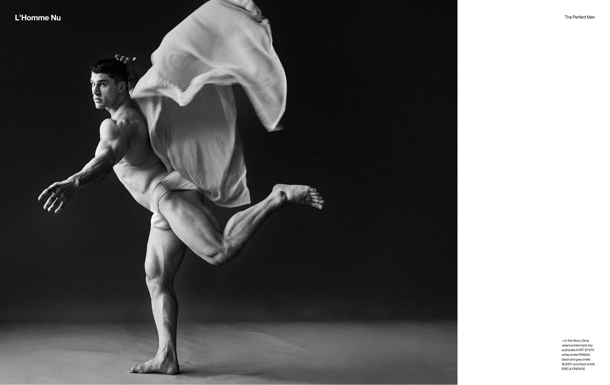 1-21. In this Story: Dima wears printed tank top and briefs KVRT STVFF, white briefs PRISMA, black and grey briefs BUDDY, and black briefs ERIC & FRIENDS