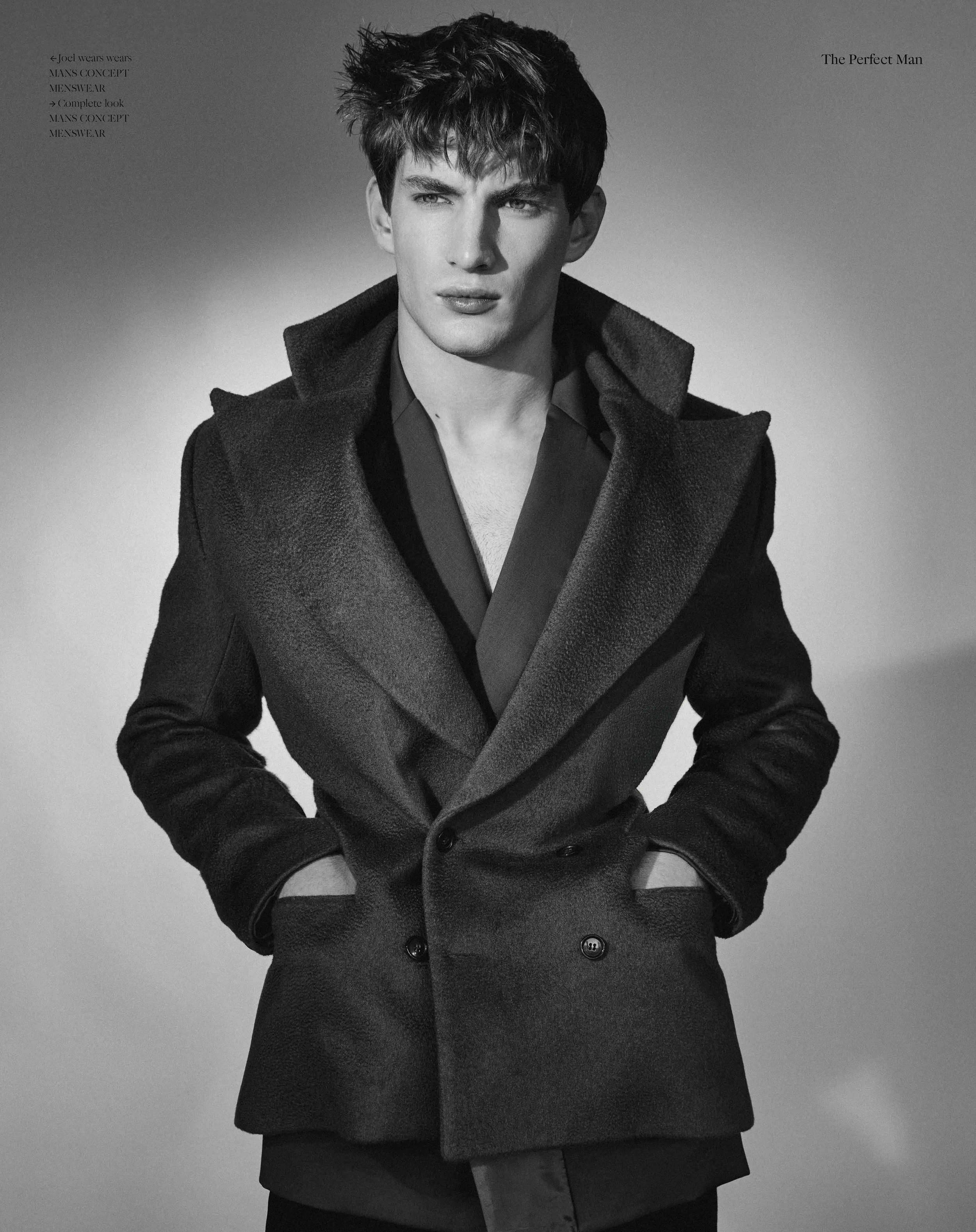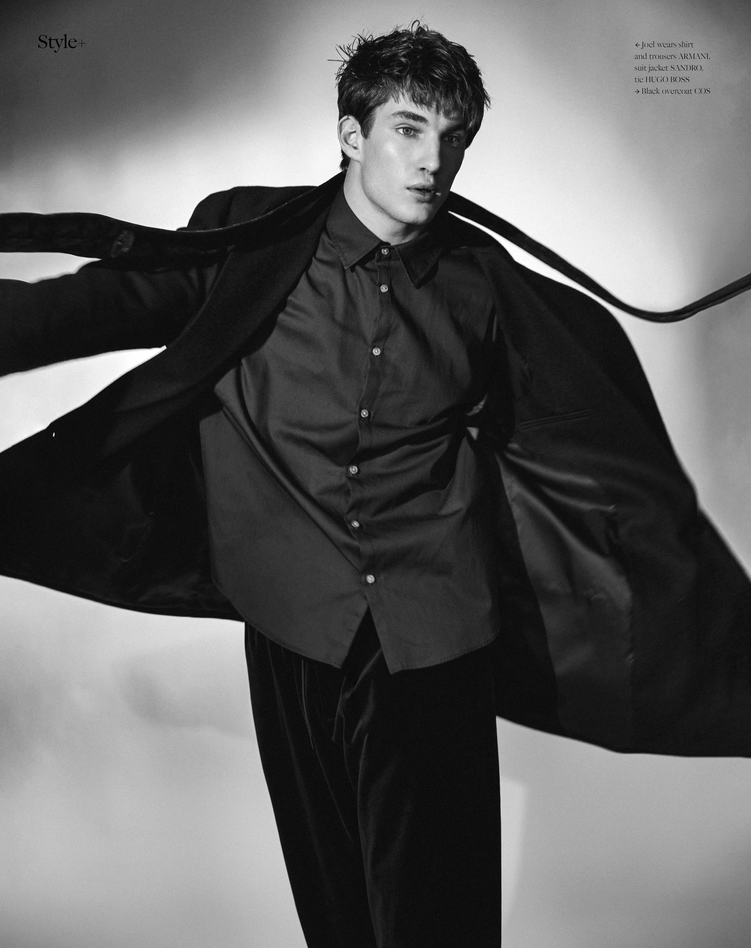 1-2. Joel Culell wears ARMANI 3-4. Joel wears MANS CONCEPT MENSWEAR, Complete look ARMANI 5-6. Joel wears complete look HUGO BOSS, belt and socks GUCCI 7-8. Joel wears shirt and trousers ARMANI, suit jacket SANDRO, tie HUGO BOSS, Black overcoat COS 9-10. Joel wears wears MANS CONCEPT MENSWEAR, Complete look MANS CONCEPT MENSWEAR 11-12. Joel wears HUGO BOSS, belt and socks GUCCI, Black trousers MANS CONCEPT MENSWEAR 13-14. Joel wears complete look HUGO BOSS, Suit BORSALINO, shirt VALENTINO, belt HUGO BOSS