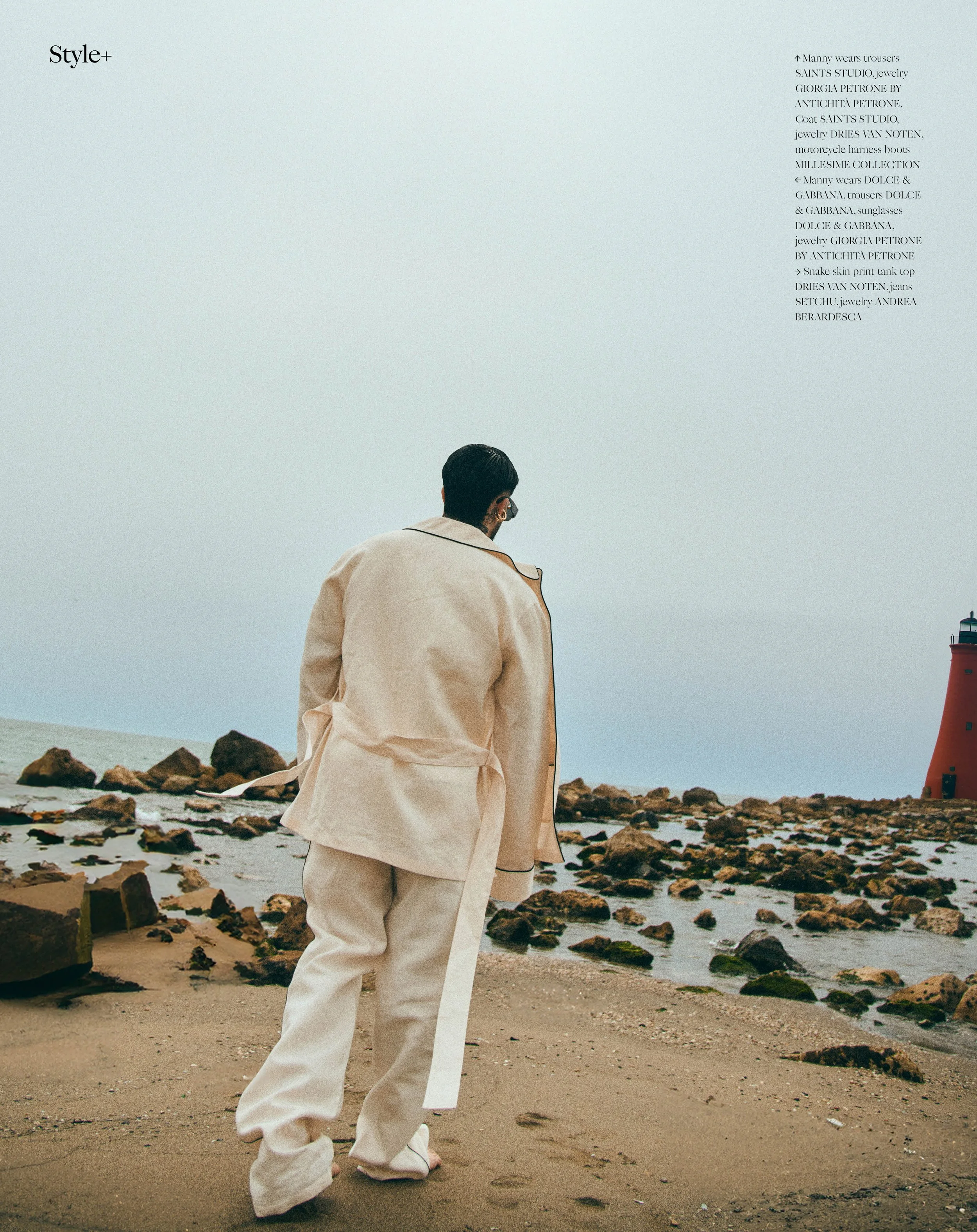 1-4. Manny HP wears coat SAINTS STUDIO, jewelry DRIES VAN NOTEN, motorcycle harness boots MILLESIME COLLECTION, Trench coat and dark beige trousers FERRAGAMO 5-6. Manny wears ivory polo, trousers and sunglasses DOLCE & GABBANA, Jewelry GIORGIA PETRONE BY ANTICHITÀ PETRONE, Shirt and trousers SAINTS STUDIO, jewelry GIORGIA PETRONE BY ANTICHITÀ PETRONE, jewelry GIORGIA PETRONE BY ANTICHITÀ PETRONE. 7-10. Manny wears shirt and trousers SAINTS STUDIO, jewelry GIORGIA PETRONE BY ANTICHITÀ PETRONE, motorcycle harness boots MILLESIME COLLECTION, Snake skin print tank top DRIES VAN NOTEN, dark blue jeans SETCHU, jewelry ANDREA BERARDESCA 11-14. Manny wears trousers SAINTS STUDIO, jewelry GIORGIA PETRONE BY ANTICHITÀ PETRONE, Coat SAINTS STUDIO, jewelry DRIES VAN NOTEN, motorcycle harness boots MILLESIME COLLECTION, Manny wears DOLCE & GABBANA, trousers DOLCE & GABBANA, sunglasses DOLCE & GABBANA, jewelry GIORGIA PETRONE BY ANTICHITÀ PETRONE, Snake skin print tank top DRIES VAN NOTEN, jeans SETCHU, jewelry ANDREA BERARDESCA 15-18. Manny wears olive green gilet BARBOUR, shirt BURBERRY, trousers GABRIELE PASINI, coat, v-neck knit and trousers FERRAGAMO, Manny wears outer shirt LEMAIRE, classic white tank top LEVI’S, trousers LEMAIRE, hat MILLESIME COLLECTION, Blazer CANAKU, trousers GABRIELE PASINI 19-22. Manny wears trousers SAINTS STUDIO, jewelry GIORGIA PETRONE BY ANTICHITÀ PETRONE, jewelry GIORGIA PETRONE BY ANTICHITÀ PETRONE, Manny wears white briefs TOM FORD, jewelry GIORGIA PETRONE BY ANTICHITÀ PETRONE, Jewelry ANDREA BERARDESCA 23-26. Manny wears jewelry GIORGIA PETRONE BY ANTICHITÀ PETRONE coat, vneck knit and trousers FERRAGAMO coat, vneck knit and trousers FERRAGAMO, Tank top DRIES VAN NOTEN, jewelry ANDREA BERARDESCA 27-28. Manny wears outer shirt LEMAIRE, tank top LEVI’S, trousers LEMAIRE, hat MILLESIME COLLECTION, motorcycle harness boots MILLESIME COLLECTION, Trench coat and dark beige trousers FERRAGAMO, Polo DOLCE & GABBANA, trousers and sunglasses DOLCE & GABBANA, jewelry GIORGIA PETRONE BY ANTICHITÀ PETRONE, blazer CANAKU, trousers GABRIELE PASINI, shoes MILLESIME COLLECTION 29-34. Manny wears white briefs TOM FORD, jewelry GIORGIA PETRONE BY ANTICHITÀ PETRONE, Outer shirt LEMAIRE, tank top LEVI’S, trousers LEMAIRE, hat MILLESIME COLLECTION, shoes MILLESIME COLLECTION, Shoes DOLCE & GABBANA, jewelry GIORGIA PETRONE BY ANTICHITÀ PETRONE