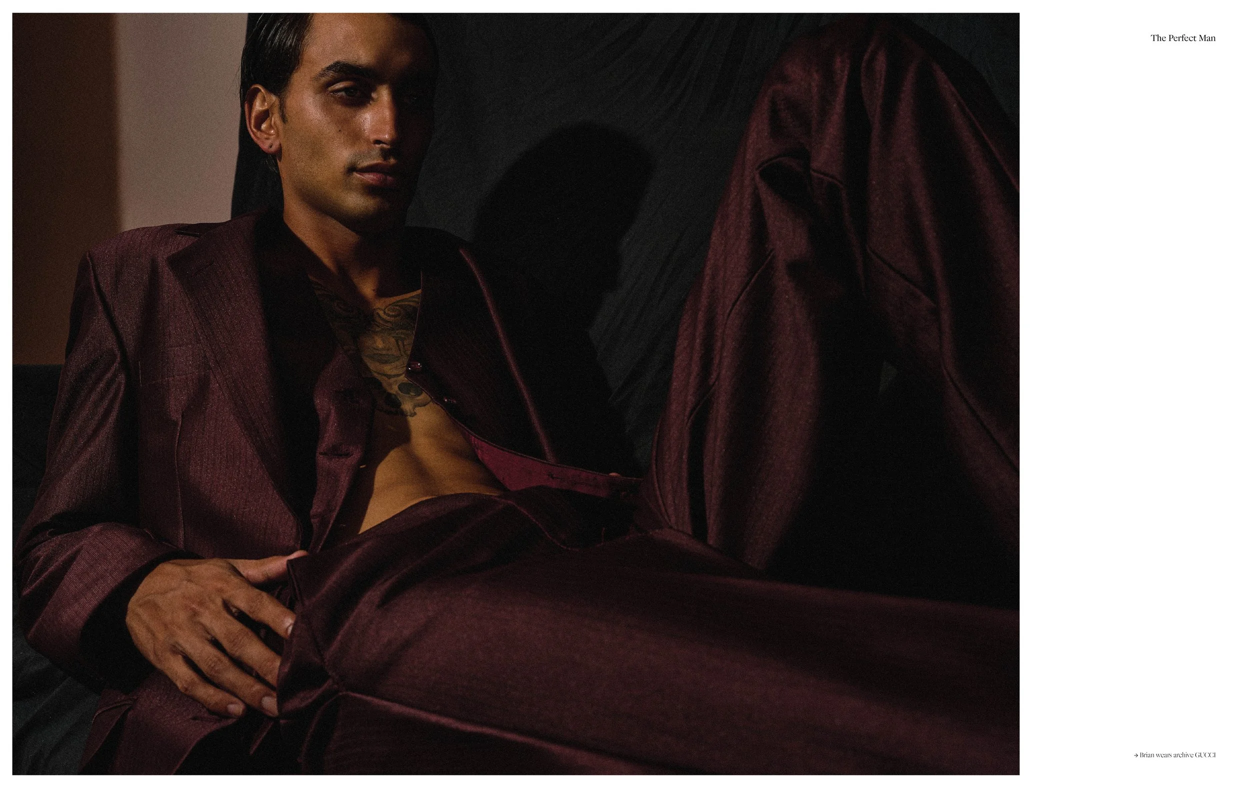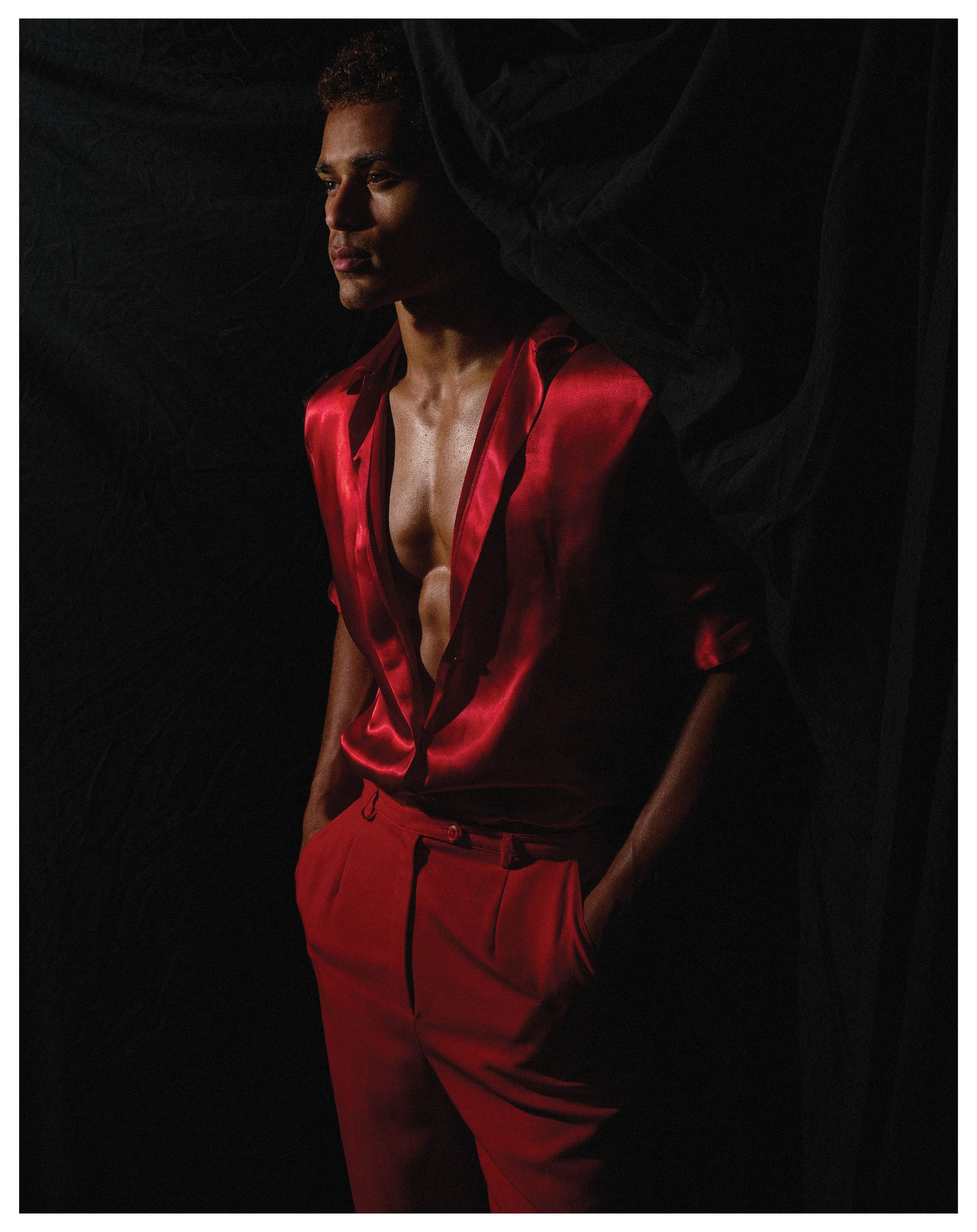 1-2. Minkah wears ALEXANDER MCQUEEN, shoes FERRAGAMO 3-4. AJ wears mesh tank top RUFSKIN, trousers THEORY 5-6. Minkah and AJ wear ALEXANDER MCQUEEN 7-8. AJ wears tan briefs RUFSKIN 9-10. Minkah wears red briefs RUFSKIN 11-12. Brian wears archive GUCCI 13-14. Minkah wears white blazer RALPH LAUREN