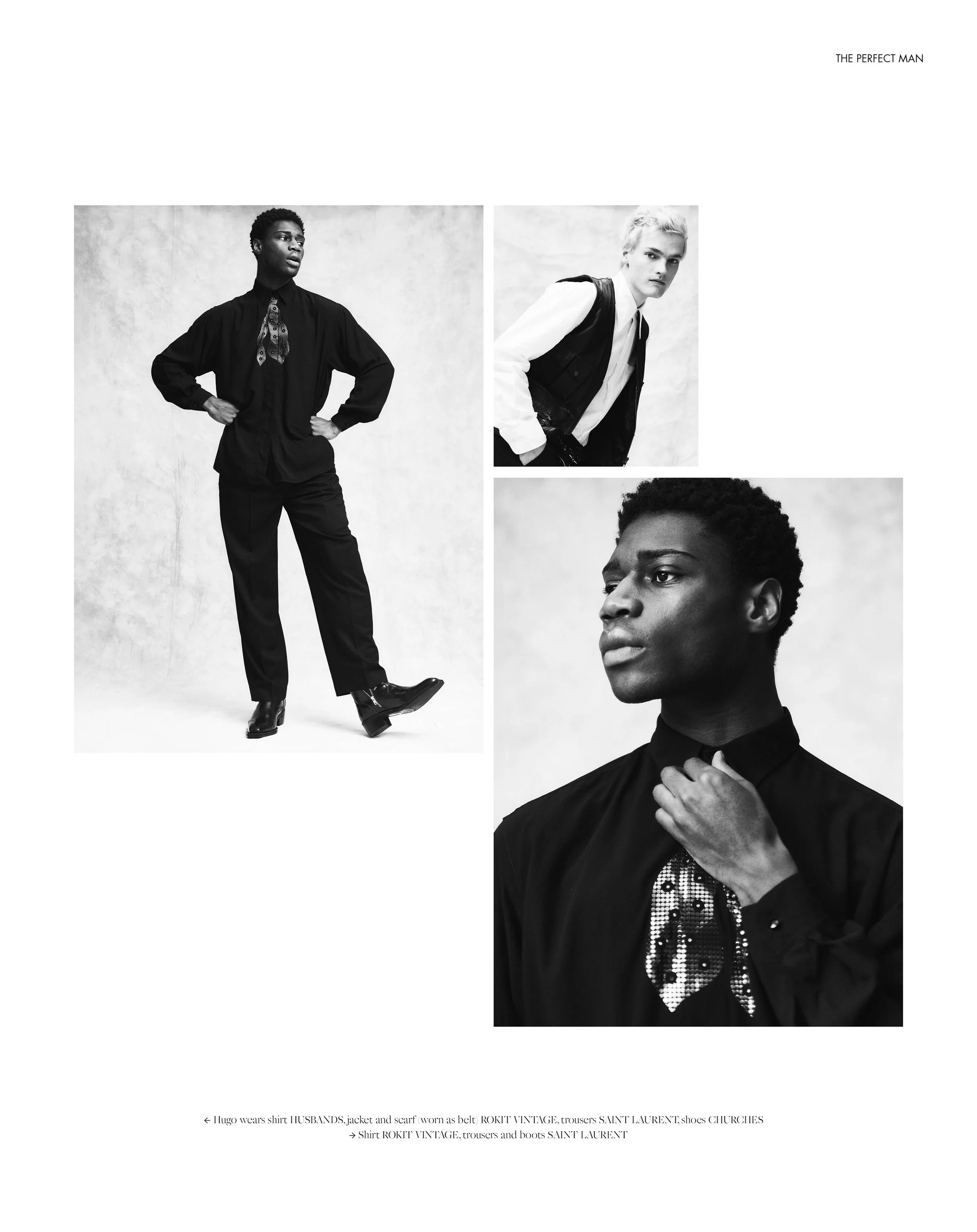 1-2. Hugo and Young wears RICK OWENS 3-4. Young wears sleeveless top and jeans LOEWE, shoes CAMPER, Young wears RICK OWENS 5-6. Shirt HUSBANDS, jacket and scarf (worn as belt) ROKIT VINTAGE, trousers SAINT LAURENT, shoes CHURCHES 7-8. Paris wears pants OFF-WHITE, earring VAN CLEEF & ARPELS, Jacket AMI PARIS, necklace PATRICK MUFF 9-10. Lenny wears necklace BLEUE BURNHAM, Hugo wears jeans LOEWE, shirt CHRISTOPHER KANE, shorts GUCCI 11-12. Young wears sunglasses BOTTEGA VENETA, trousers THE ELDER STATESMAN 13-14. Necklace BLEUE BURNHAM, shorts GUCCI, shoes MARNI 15-16. Young wears sleeveless top and jeans LOEWE, shoes CAMPER, Hugo wears jeans LOEWE 17-18. Hugo wears shirt HUSBANDS, jacket and scarf (worn as belt) ROKIT VINTAGE, trousers SAINT LAURENT, shoes CHURCHES, Shirt ROKIT VINTAGE, trousers and boots SAINT LAURENT 19-20. Necklace BLEUE BURNHAM, shorts GUCCI, shoes MARNI